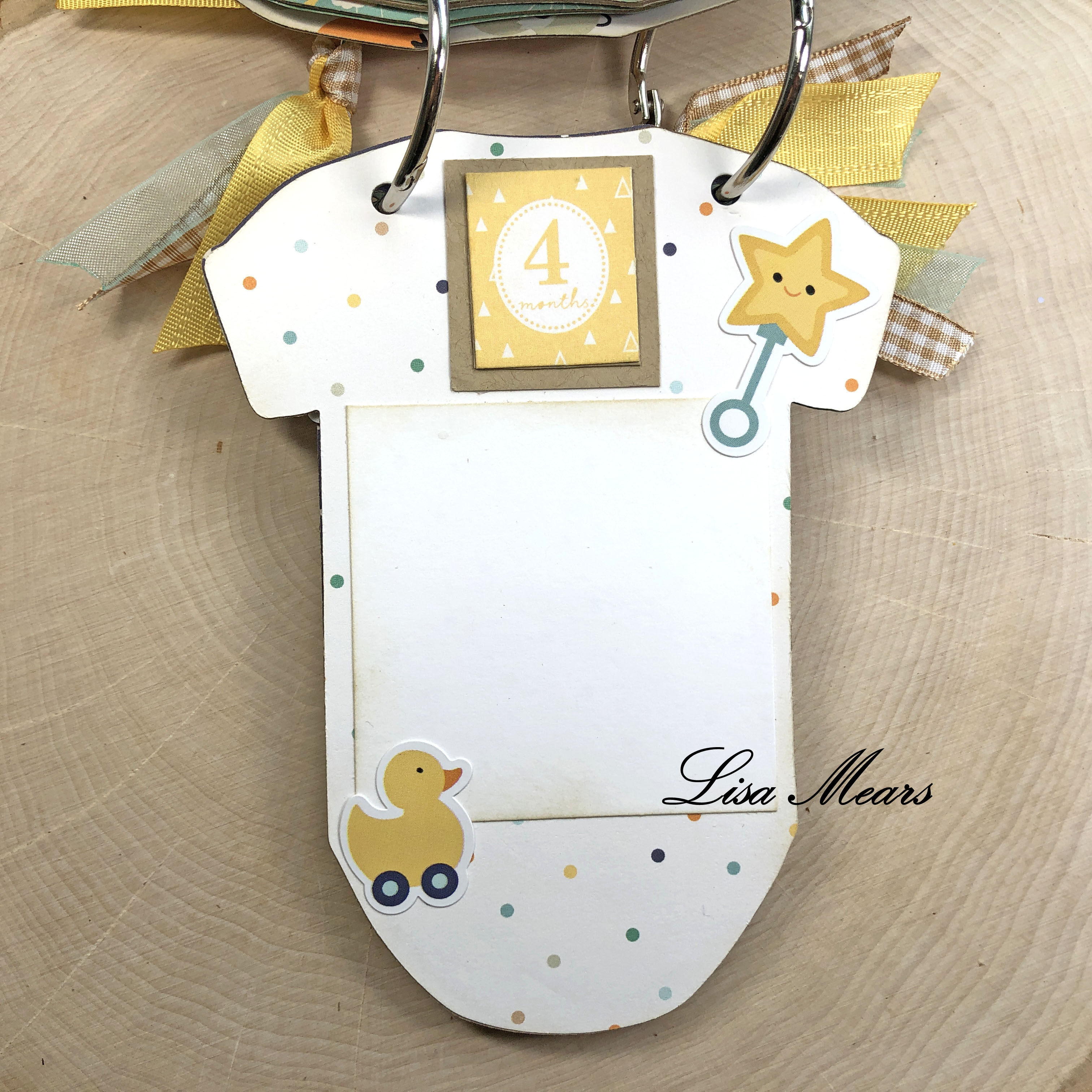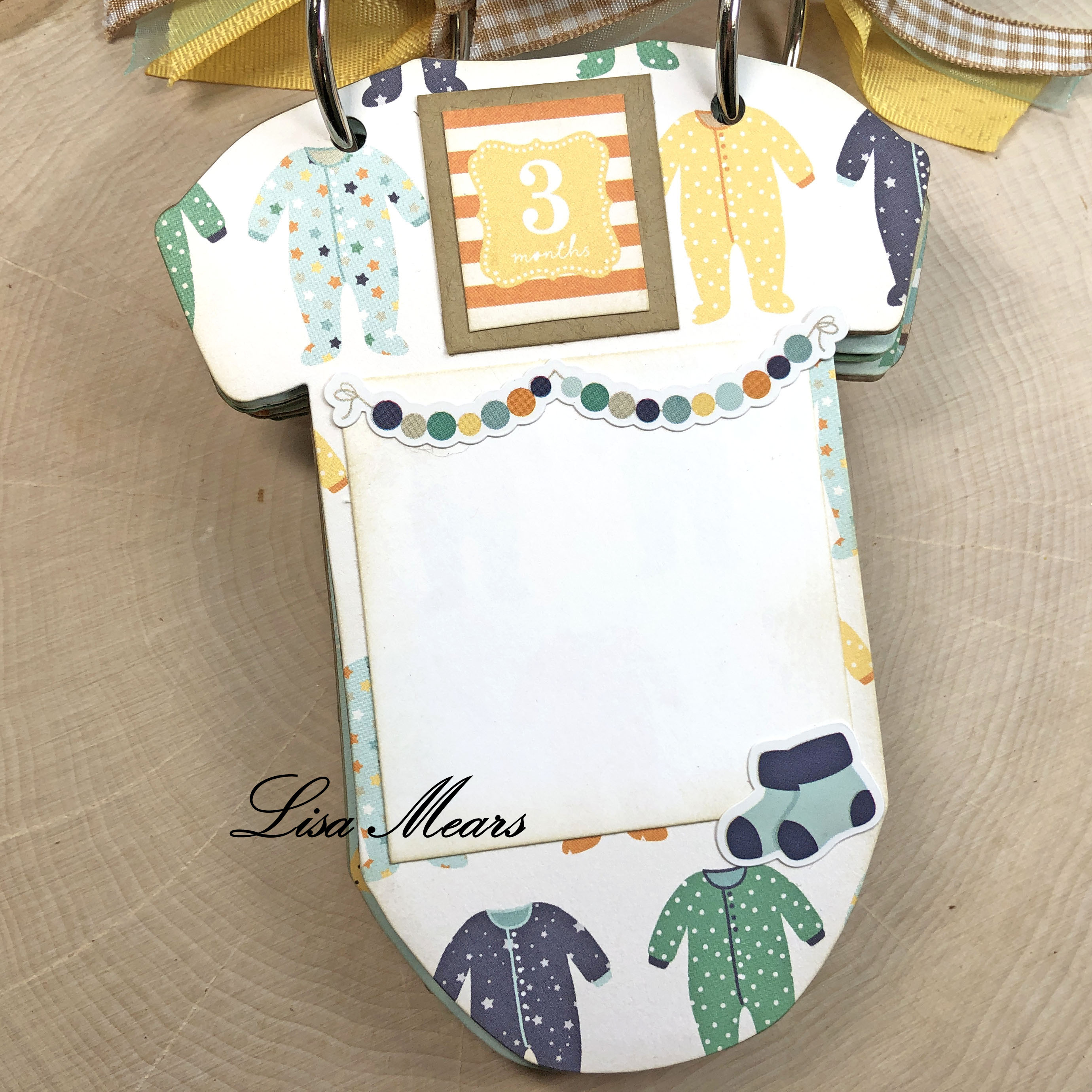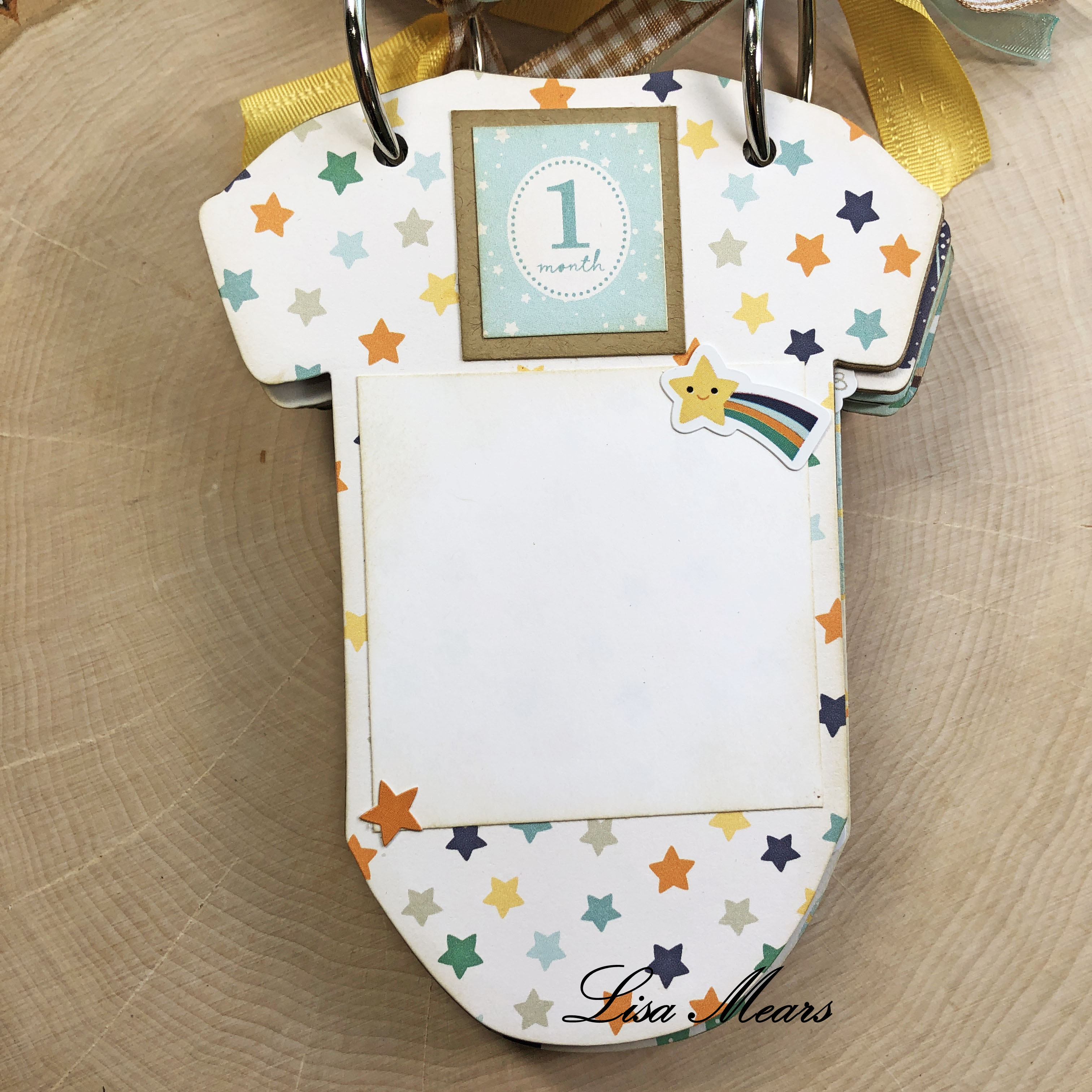 Today on my blog I’m sharing an album that I made with the Onesie Fold-it die set from The Stamps of Life. This die set makes a card shaped like a baby onesie, however, I used it here as an album. There is a page in the album for each month of the baby’s first year.