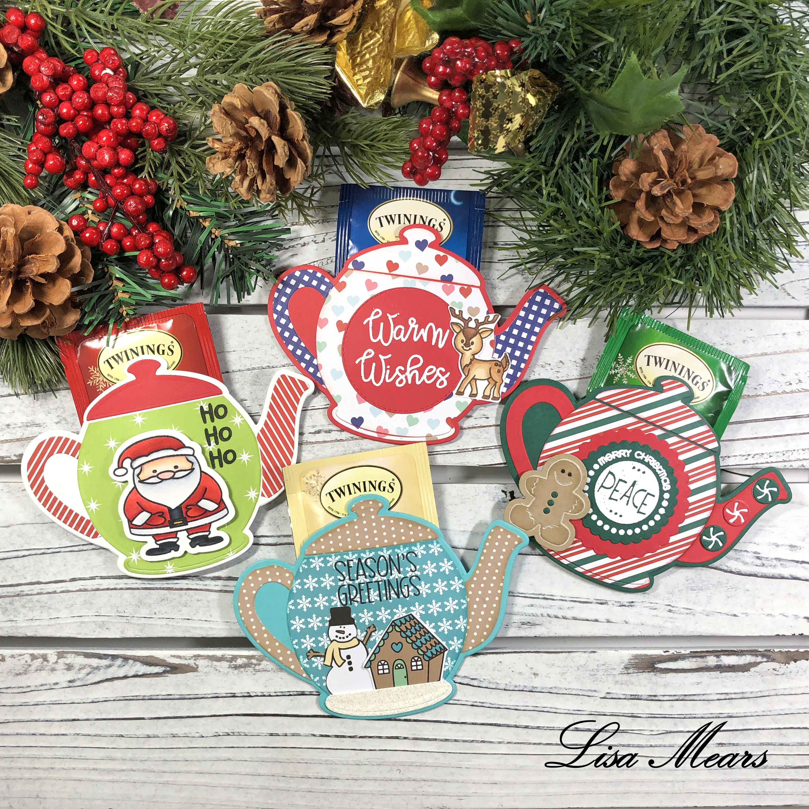 For Day 6 of my 12 Days of Christmas Craft Series, I will show you how to make these tea bag holders using the Tea Pot Fold-it die set from The Stamps of Life. These are perfect for a quick gift idea for a co-worker, teacher, or friend. Wrap them in cellophane and they would be great for a holiday craft fair idea. These tea bag holders have a bag of holiday tea and a honey packet inside.