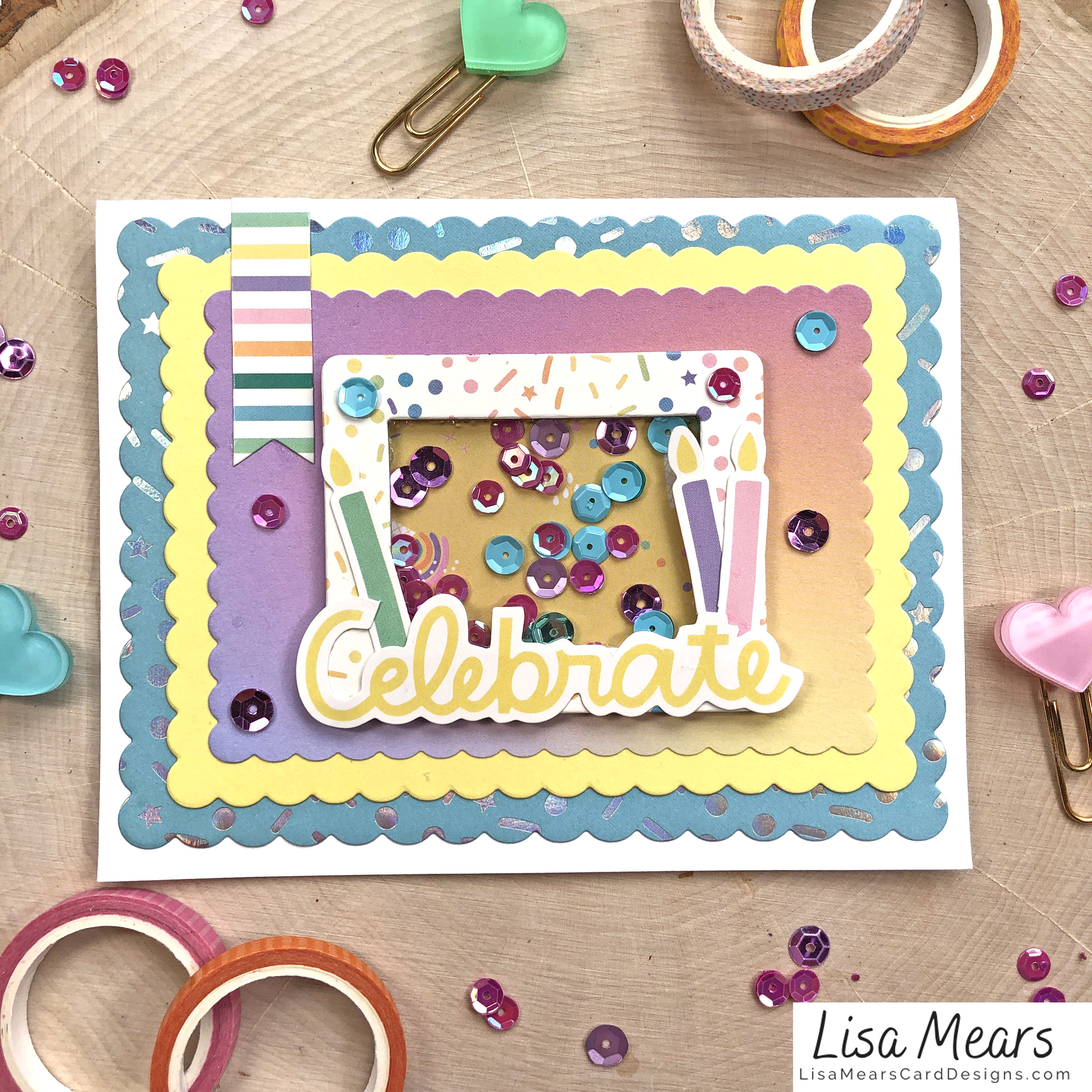 Today I’m sharing 12 cards I made using the Recollections Memory Explosion Box Collection. This collection is sold at Michaels craft stores. It caught my eye because of all of the pretty pastel colors and foil throughout the paper pad. There were so many pieces to this collection, but I purchased the 6 x 6 foil paper, chipboard frame stickers, birthday die cuts, and washi tape. With these items, I made 12 birthday cards and used up all of the ephemera. Some of the cards can be used for congratulations cards as well. With the chipboard frames, I made some shaker cards. All supplies are listed below.