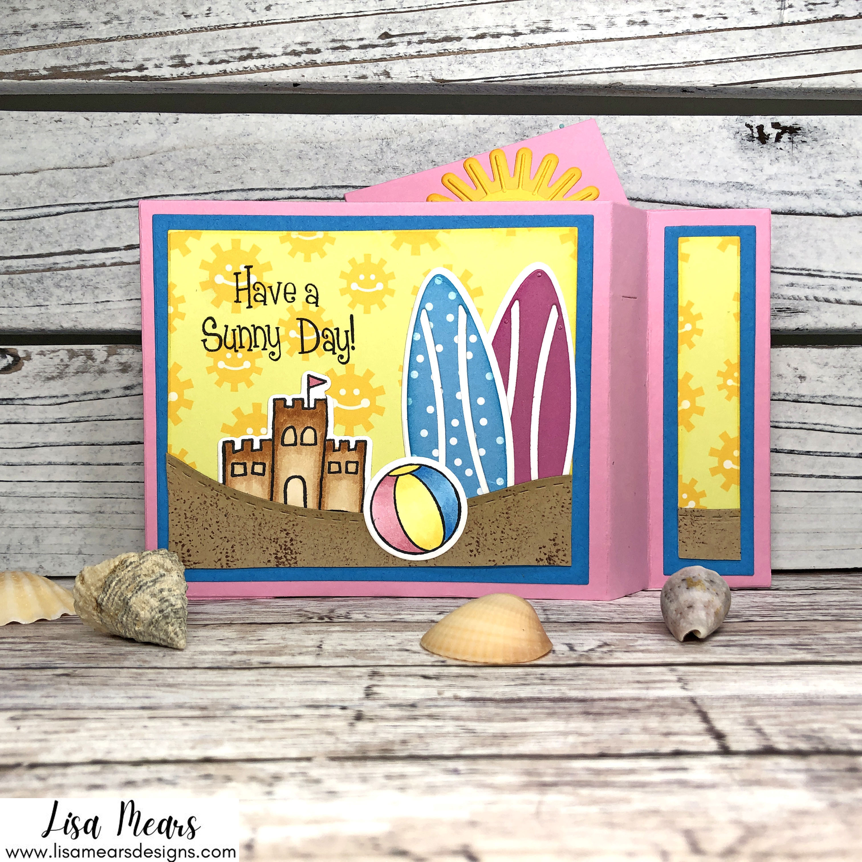 For my second card, I used the Summer4Fun set and turned this card into a beach scene where the sun pops up from the center.