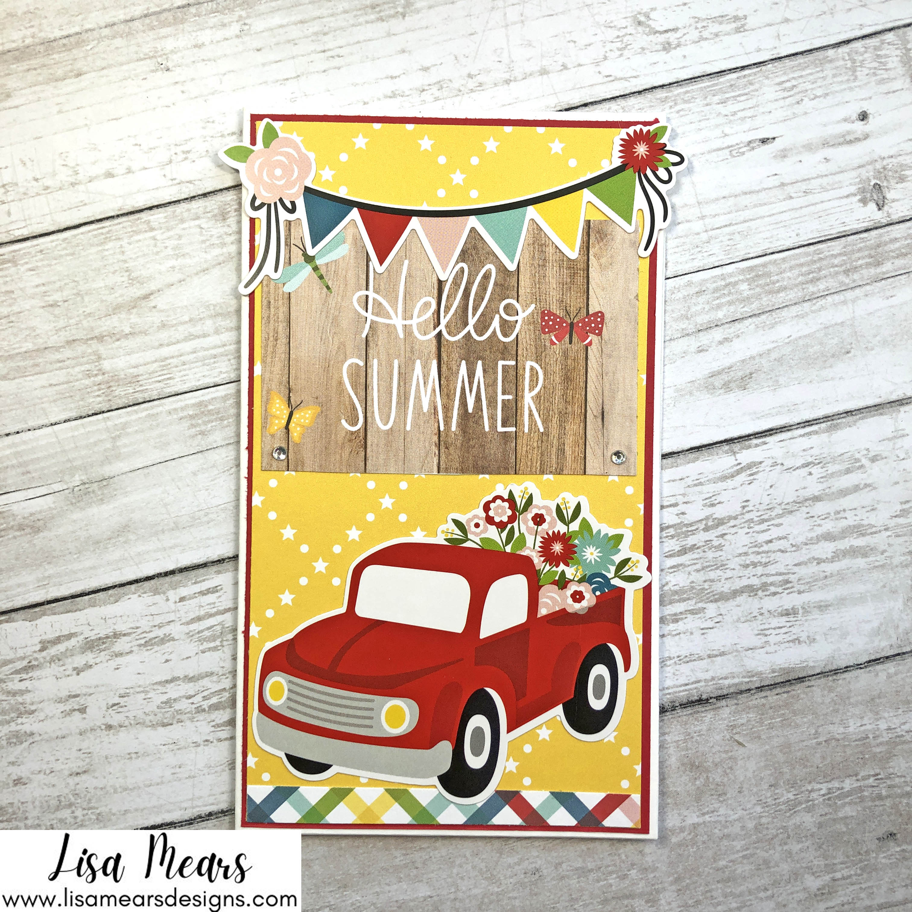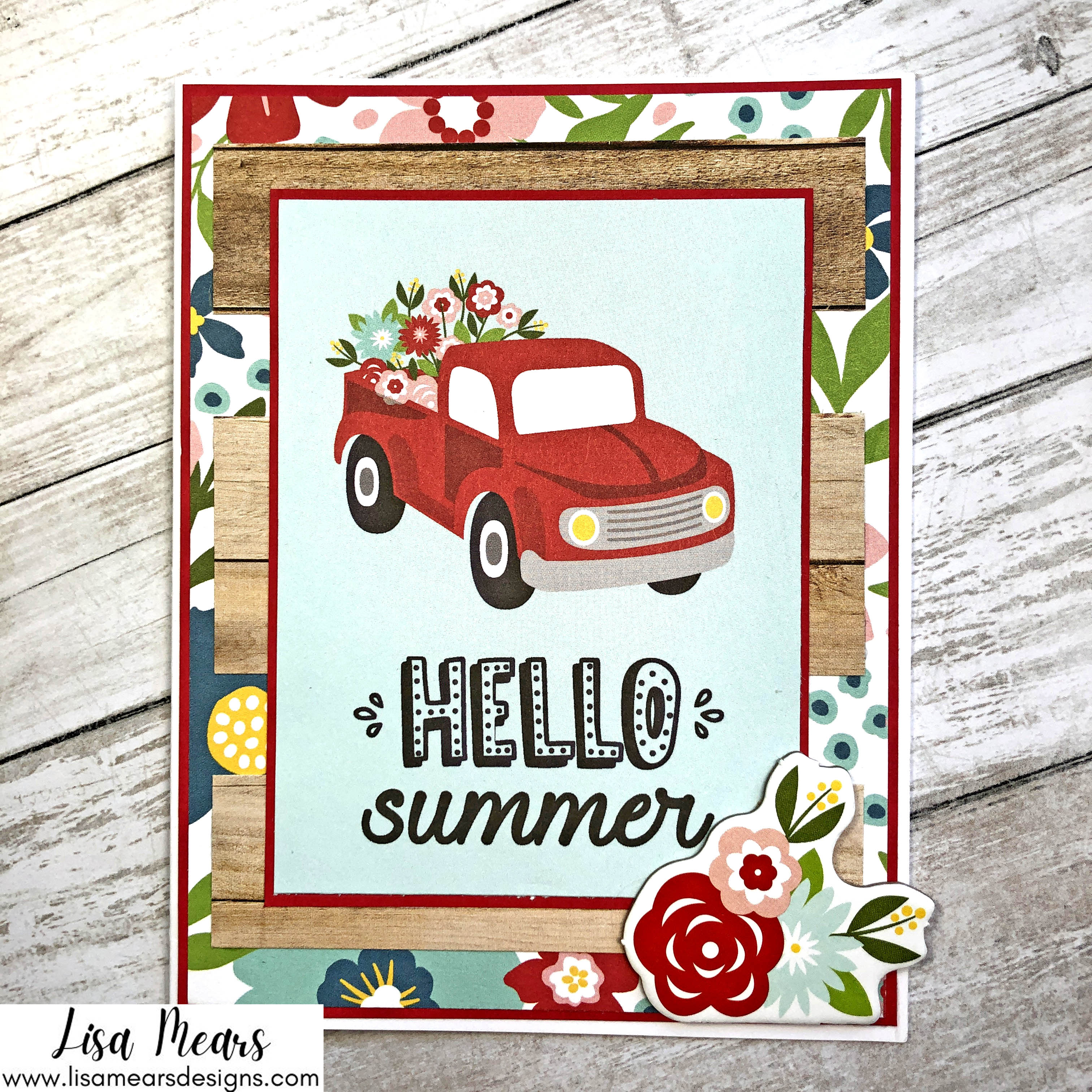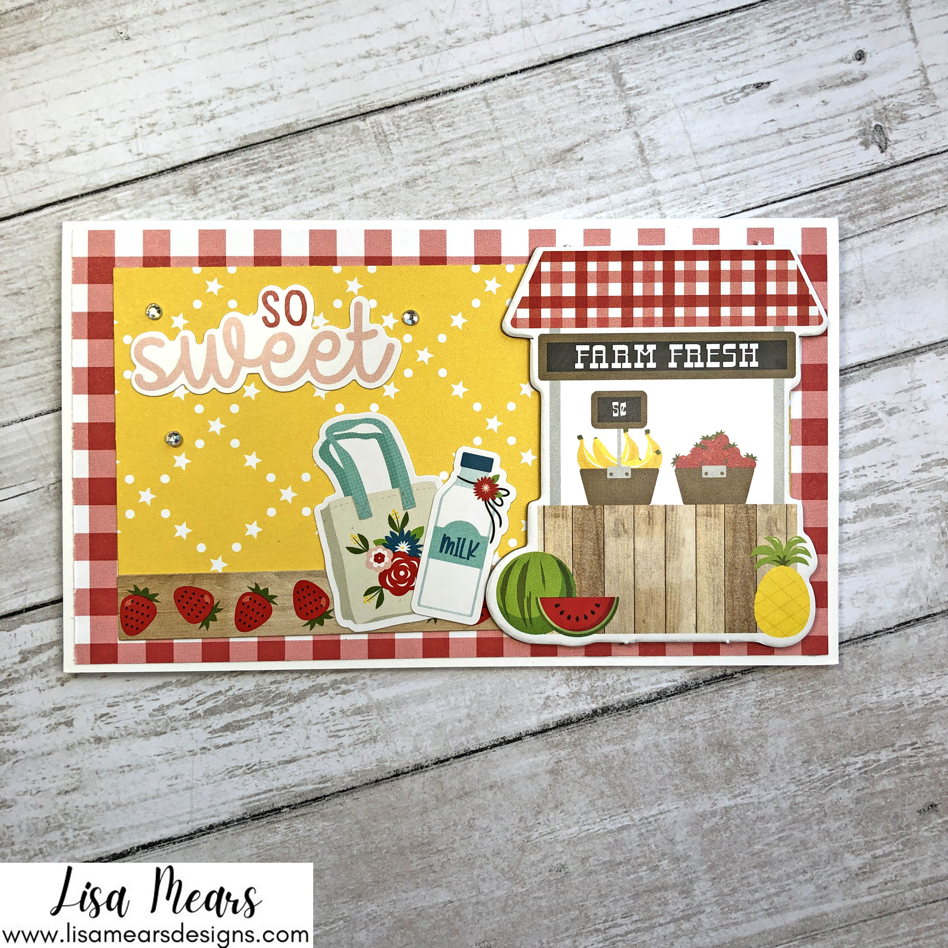 I love everything about this collection…from the lemonade stand, to the farmer’s market stand, to the old-fashioned red pick up truck! I used the 12 x 12 Collection Kit, ephemera, frames and tags, chipboard accents, chipboard sentiments, and the sticker book. All of the links to the collection are listed at the bottom of this page.