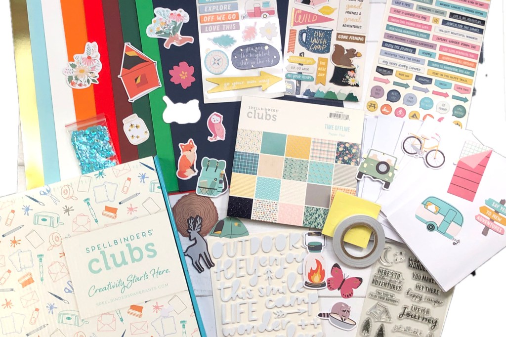 The Spellbinders November 2022 card kit has been released. This card kit is called “Time Offline.” This kit is has a camping and outdoors theme. You can make cards for people who are starting new adventures in their life, those who love the outdoors, and those who love traveling. It’s great for birthday cards, retirement cards, and friendship cards. This kit would also be perfect for camping and outdoor themed scrapbooks and traveler’s notebooks.