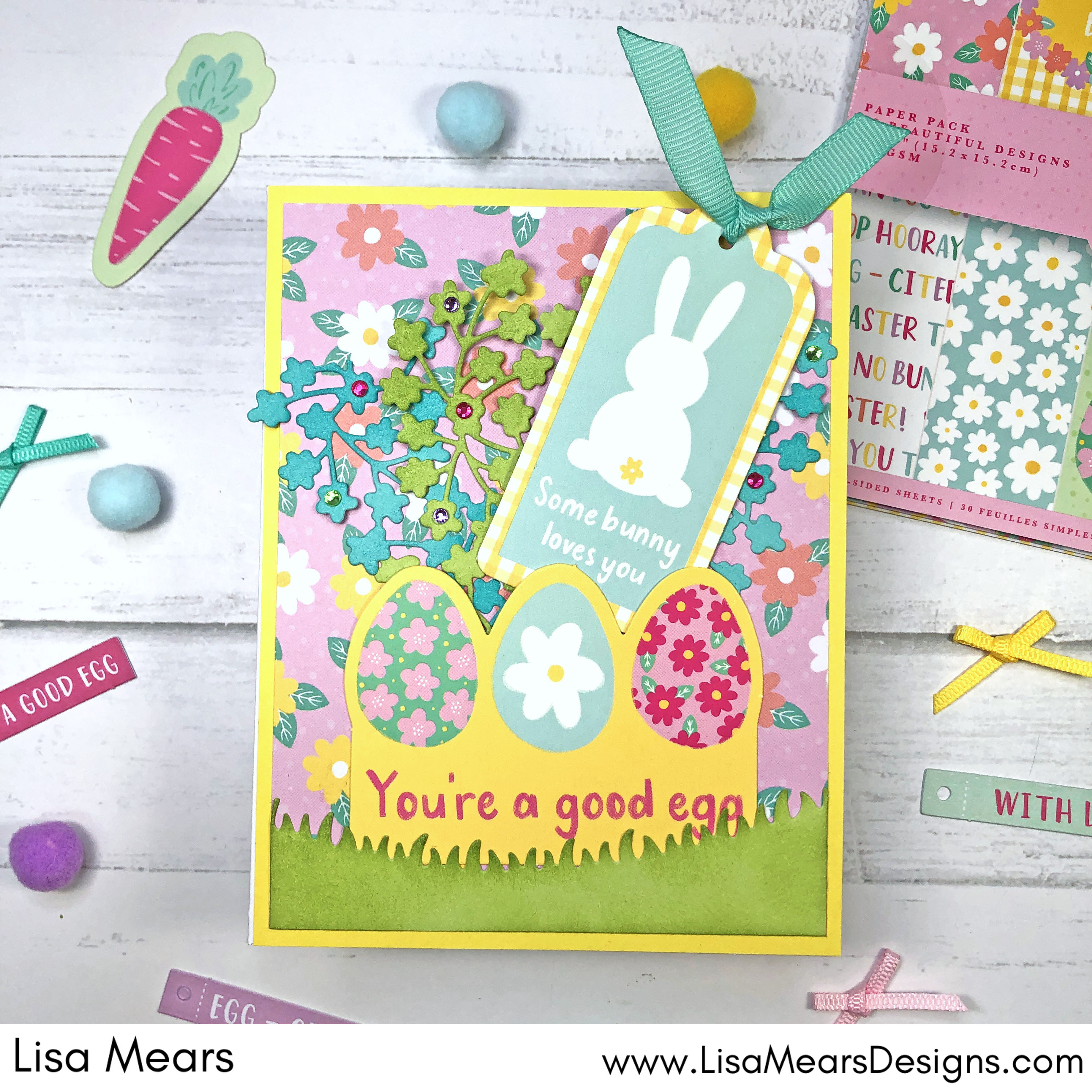 I’m so excited to share a new Easter/spring collection from Violet Studio. This collection is called Hoppy Easter and it has so many fun products in the collection from pattern paper, card toppers, stickers, adhesive gems, ribbon, bows, tags, and more!