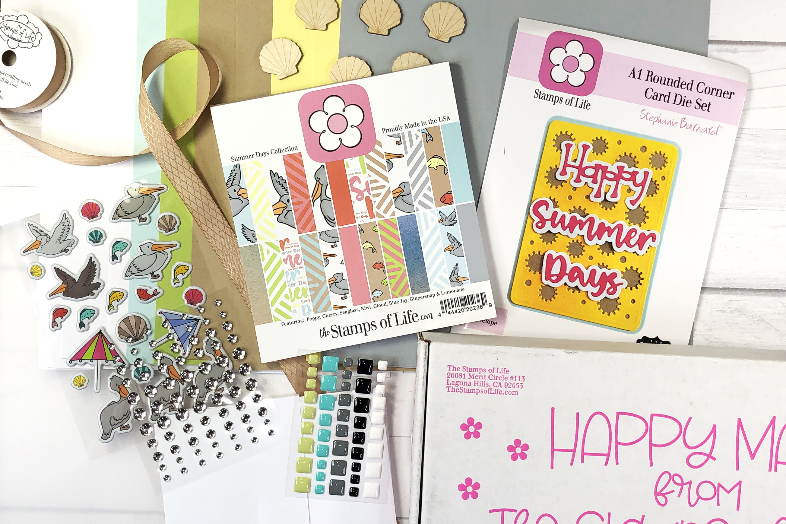The The Stamps of Life July club kits have been released! This month, the products have a beachy, summery vibe. One of my favorite places to spend an afternoon is at the beach so I was super excited when I saw this set.