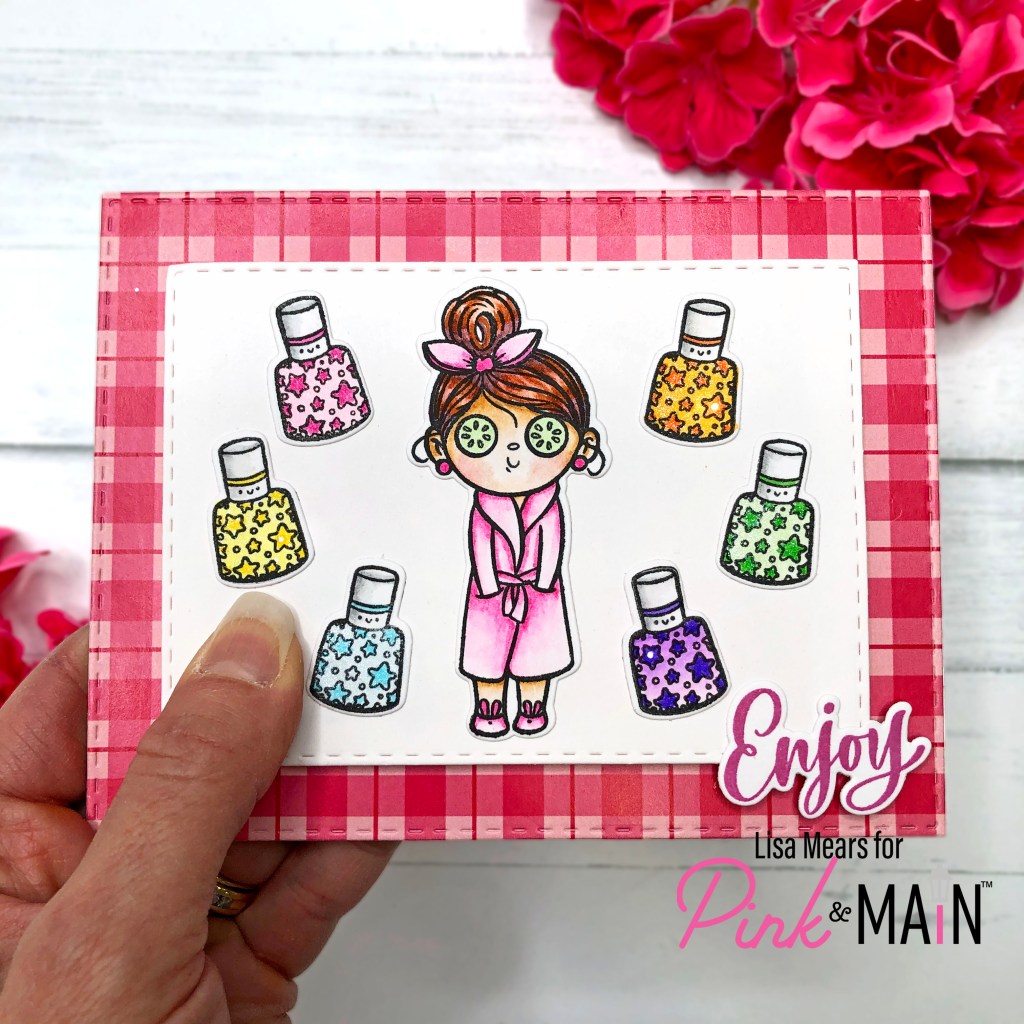 I used the Pink and Main Reset stamp set which is a perfect stamp to use when sending reminders to friends to take time for themselves.