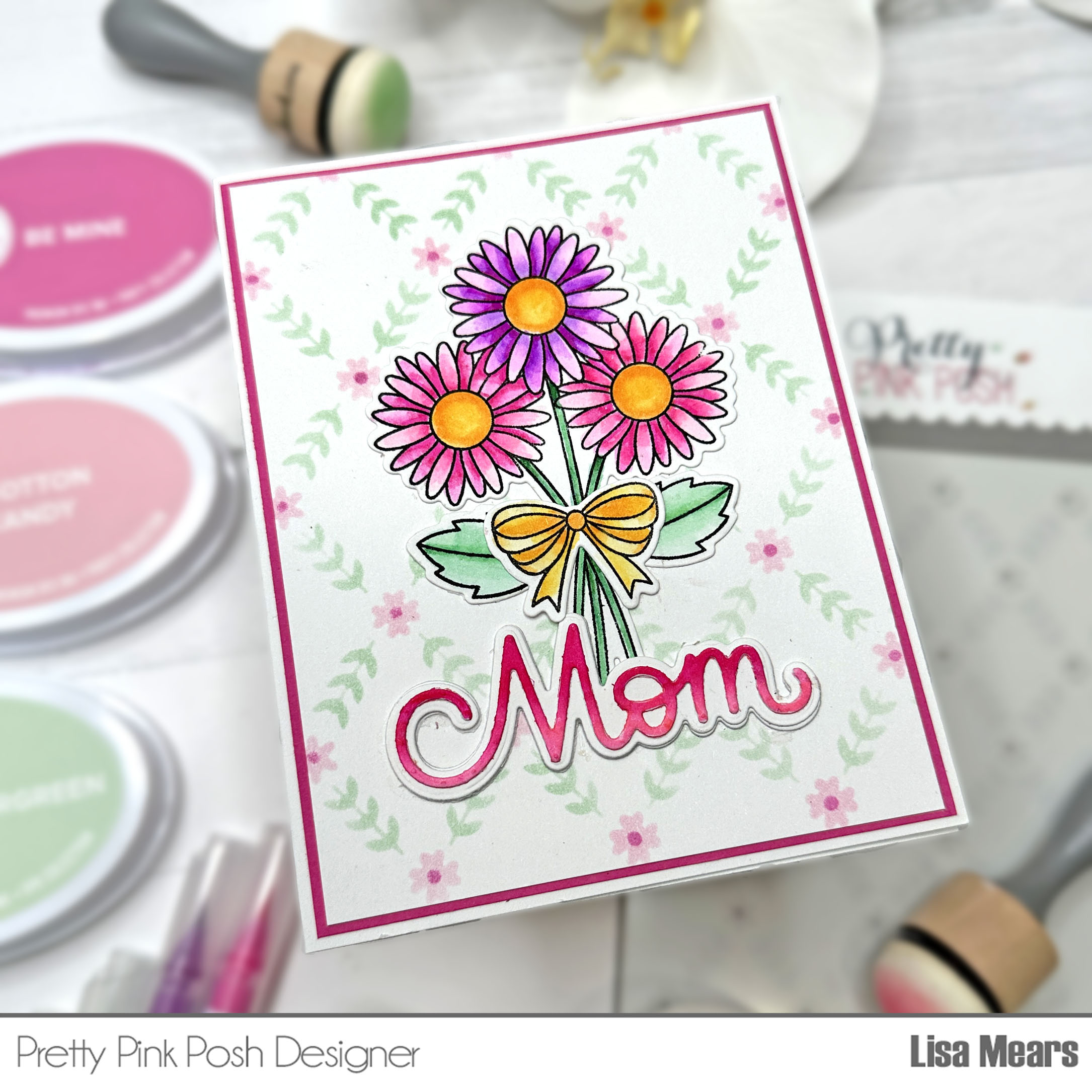 Today I’m sharing a Mother’s Day card that I made using watercoloring and stenciling with products from Pretty Pink Posh.