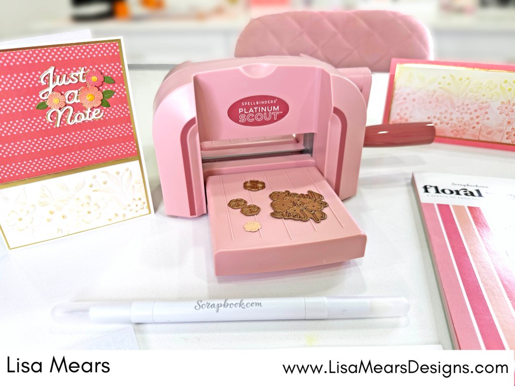 In my video, watch as I unbox the Spellbinders Scrapbook.com Platinum Rose Quartz Scout die cutting and embossing machine and make two cards.