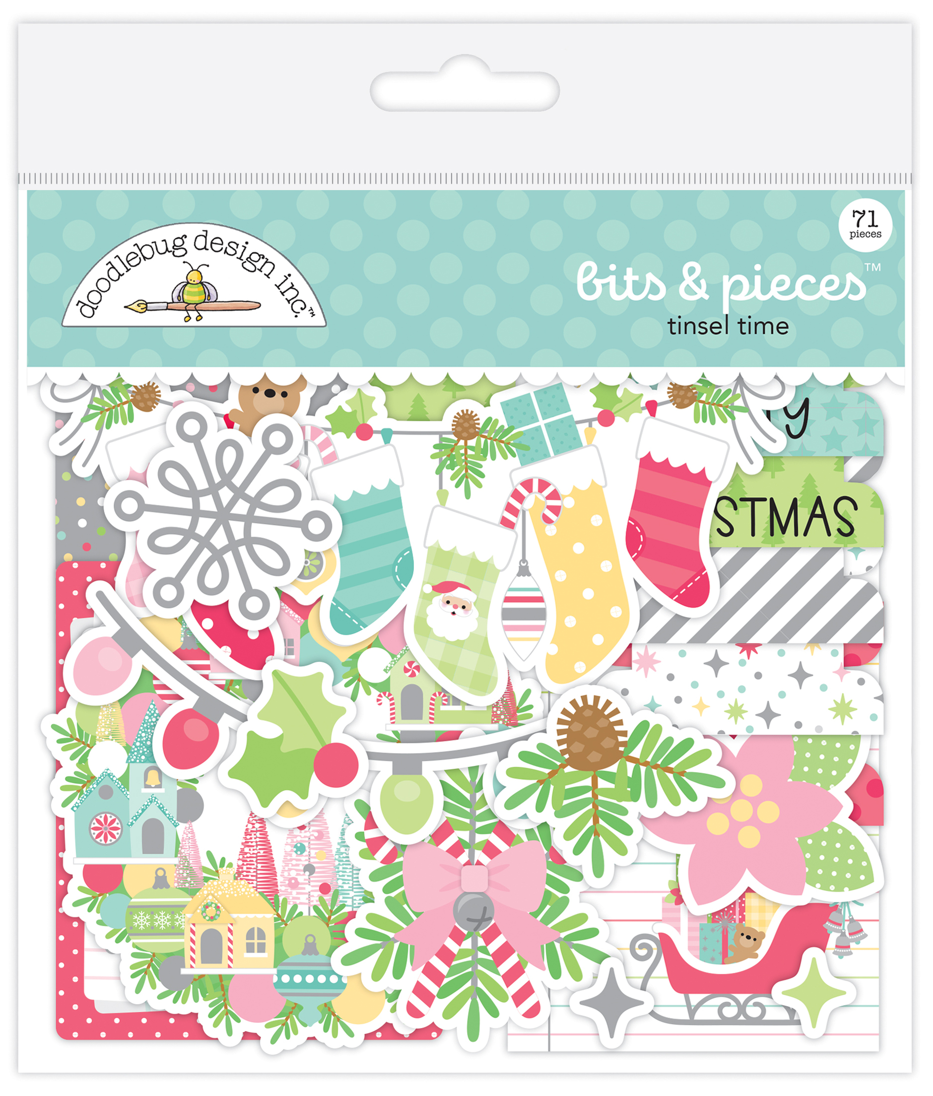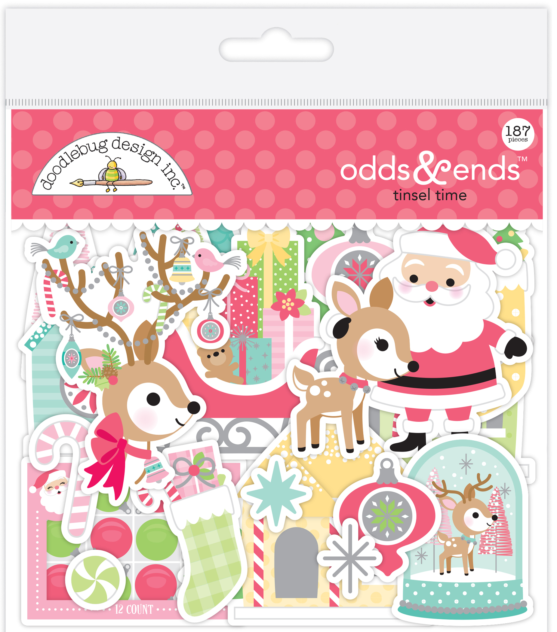 Let’s first take a look at the products I used in the Doodlebug Design Tinsel Time Collection.